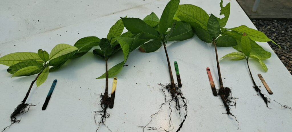 En el caso de las plántulas de café y cacao, el proceso de fortificación incluye la inoculación con micorrizas nativas, Trichoderma spp. y la aplicación de ácidos húmicos y fúlvicos; mientras que para las plántulas de plátano Hartón AAB se incorporan consorcios microbianos.