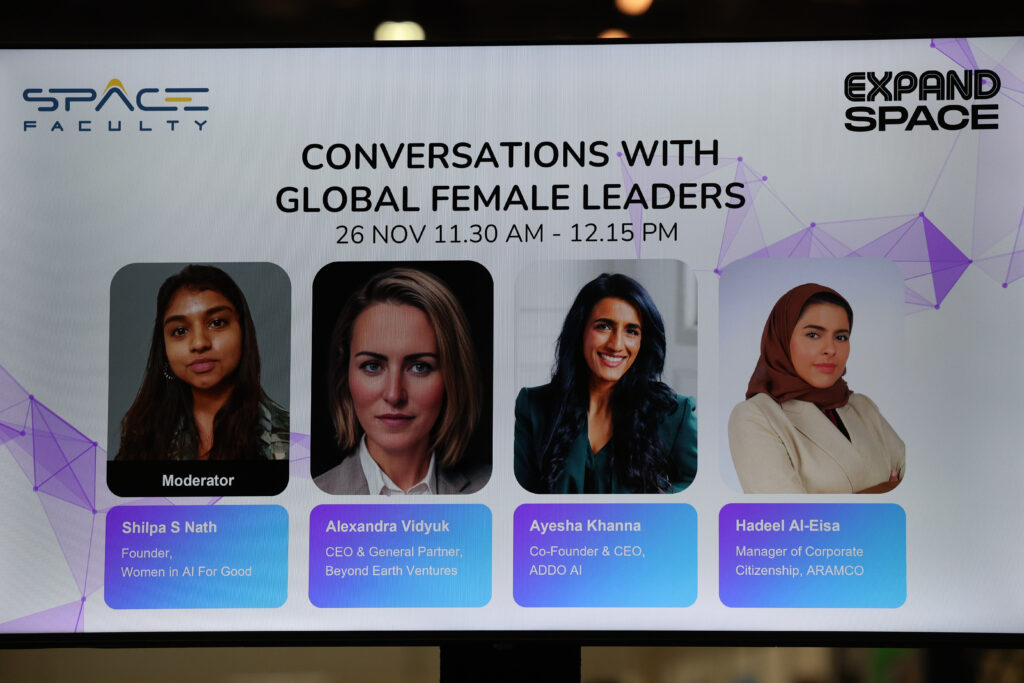 Entre las participantes se encontraban Alexandra Vidyuk, CEO y socia de Beyond Earth Ventures, una empresa especializada en tecnología espacial, robótica, energía, informática y comunicaciones; y Ayeska Khanna, cofundadora y directora ejecutiva de ADDO AI, reconocida por Forbes como una de las cuatro compañías asiáticas de inteligencia artificial que están transformando el mundo.