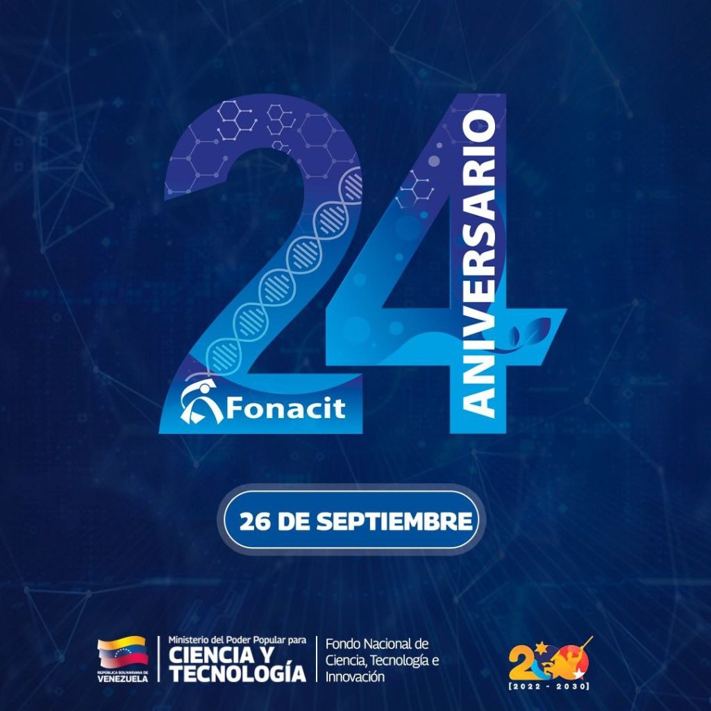 El Fondo Nacional de Ciencia, Tecnología e Innovación (Fonacit), ente adscrito al Ministerio del Poder Popular para Ciencia y Tecnología (Mincyt), celebra este 26 de septiembre su 24 aniversario, acompañando, el desarrollo científico, tecnológico y de innovación en las principales áreas productivas y del conocimiento en el país.