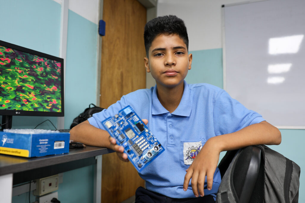 Albenis Medina, docente del área de electrónica en la escuela, enfatizó la importancia de la formación técnica en las áreas de electrónica, robótica, mecánica, electricidad e informática.