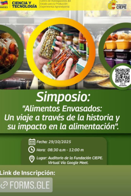 El Ministerio del Poder Popular para Ciencia y Tecnología (Mincyt), a través de la Fundación Centro de Investigaciones del Estado para la Producción Experimental Agroindustrial (Ciepe), invita a profesionales del sector agroindustrial y público en general a participar en el simposio Alimentos envasados: Un viaje a través de la historia y su impacto en la alimentación.