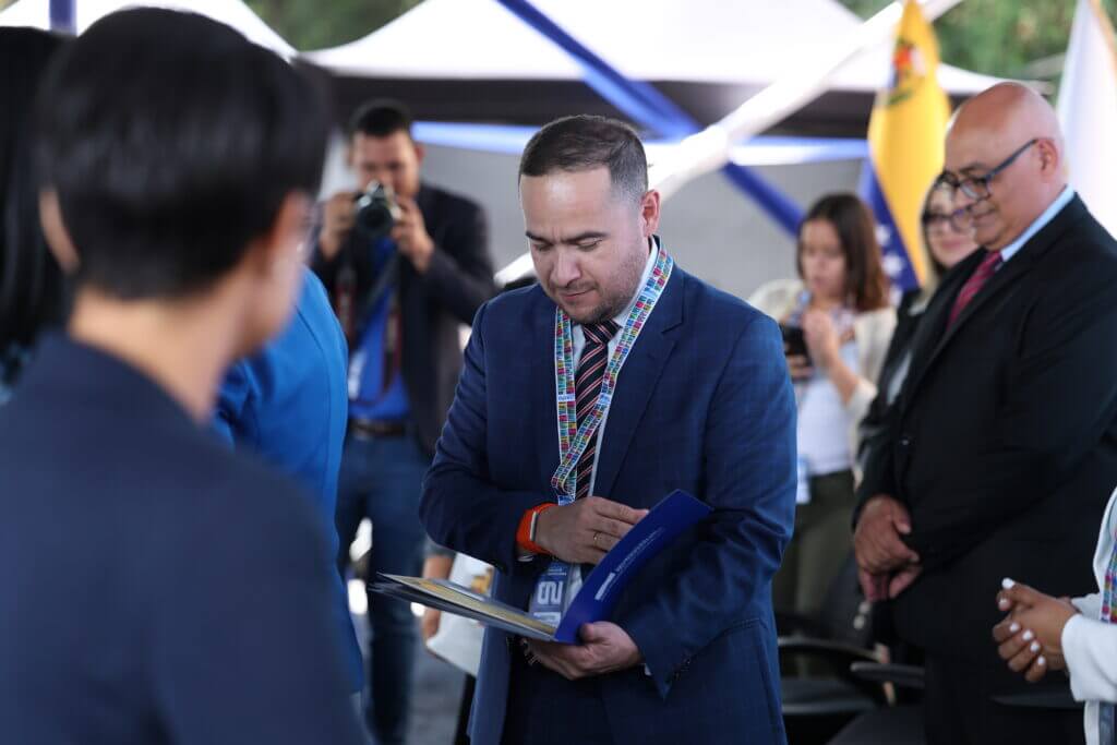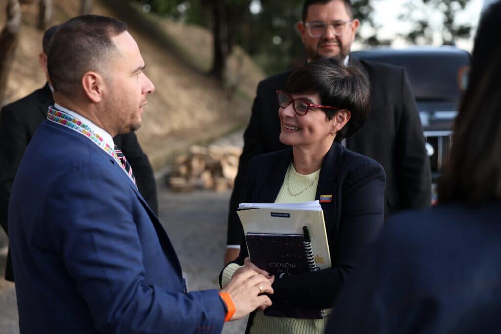 En su participación, la ministra Gabriela Jiménez Ramírez hizo un llamado a las universidades a fortalecer una ciencia con propósito, orientada desde lo local a la generación de proyectos de investigación y desarrollo, así como invitó a las casas de estudios a promover, dentro de la comunidad científica, a registrarse en el Observatorio Nacional de Ciencia y Tecnología, como espacio fundamental para visibilizar los datos de las y los venezolanos que hacen ciencia en el país.