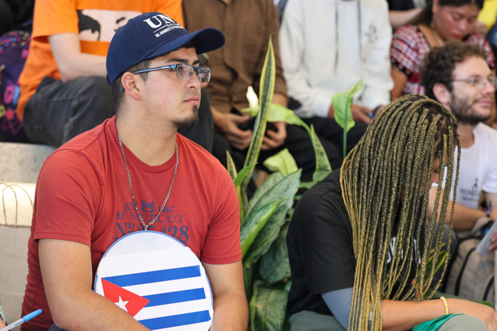 La ministra del Poder Popular para Ciencia y Tecnología, Gabriela Jiménez Ramírez, sostuvo este viernes un conversatorio con estudiantes de 14 países de América Latina y el Caribe, que participarán en la Escuela Internacional de Liderazgo Antonio José de Sucre.