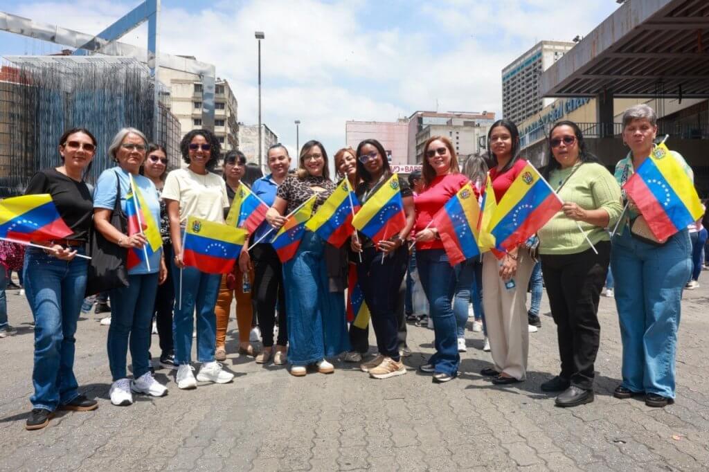 La Plaza Brión de Chacaíto vibró con la fuerza de cientos de venezolanas en la imponente concentración Todas con Delcy, en la que participaron las Mujeres por la Convivencia Democrática y la Paz, para rechazar la discriminación racial y las agresiones verbales dirigidas hacia la mujer.