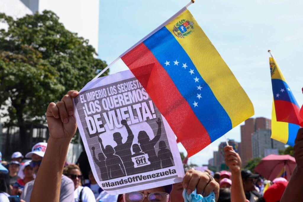 «Los venezolanos somos garantes de la paz, somos personas que estamos siempre solidarias, siempre defendiendo la legalidad, y aquí estamos defendiendo, apoyando y exigiendo el regreso de nuestro presidente Nicolás Maduro y la Primera Combatiente, Cilia Flores. Nosotros somos un pueblo de resistencia, de resilencia. Creemos en el amor, la paz y en los principios de la Revolución Bolivariana, en los principios de Simón Bolívar», concluyó.
