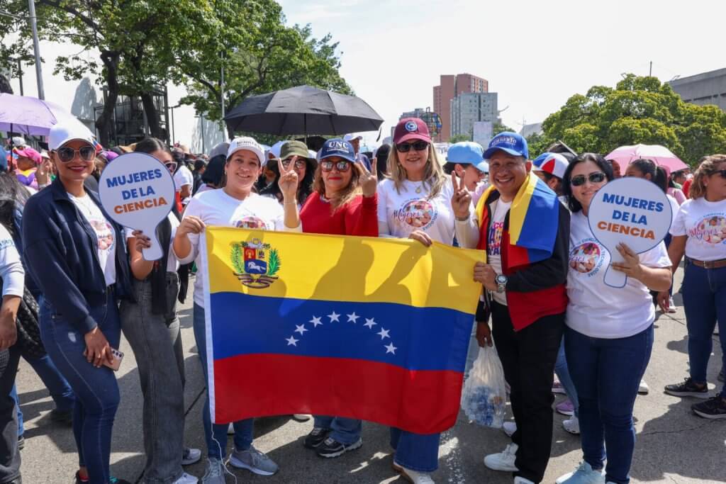 «Desde el movimiento científico exigimos su regreso y también desde el movimiento de Mujeres en las Ciencias apoyamos a la presidenta encargada, Delcy Rodríguez. Aquí estamos presentes, investigadoras, tecnólogas, científicas de Venezuela, en paz, defendiendo nuestra soberanía, defendiendo nuestra tranquilidad, defendiendo nuestra paz», afirmó Carmen Virginia Liendo, viceministra de Investigación y Generación del Conocimiento Científico del Ministerio de Ciencia y Tecnología (Mincyt).