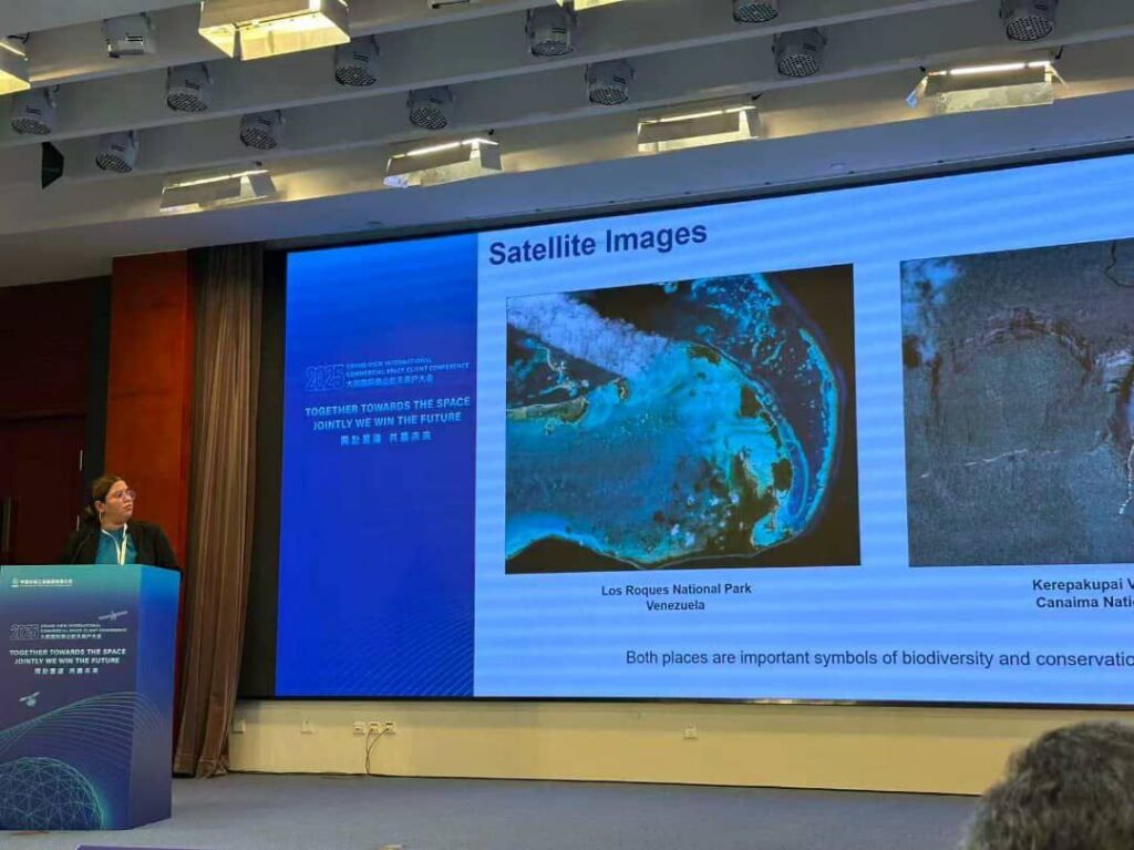 Por parte de la ABAE participó la ingeniera Dafherlym Briceño, jefa de la Unidad de Observación de la Tierra, quien presentó la ponencia titulada “Venezuela en el espacio: aplicaciones ambientales del satélite de observación de la tierra VRSS-2”.