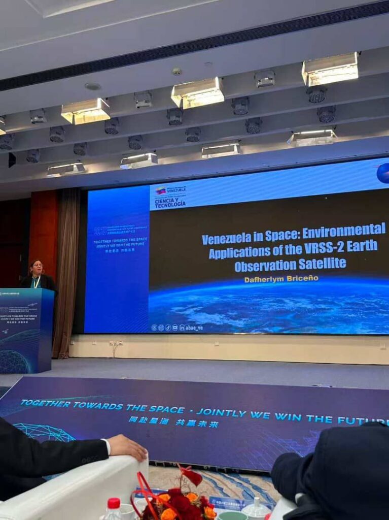 La ministra Gabriela Jiménez Ramírez detalló que durante su conferencia, se «destacaron los avances del Gobierno Bolivariano en la consolidación de la soberanía tecnológica espacial, así como las aplicaciones ambientales y sociales derivadas del uso del Satélite de Observación de la Tierra VRSS-2 (Satélite Sucre)».